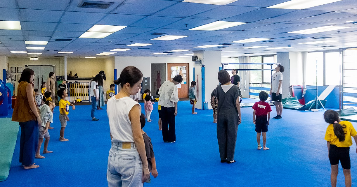1時間同じクラスで一緒に運動した子供と目を合わせてタッチするという行為は、互いの頑張りを認め讃え合うという意味で社会性を育むのに有効であるばかりでなく、次回ジムに来た時にクラスに無理なく馴染める状態を作ることができます。